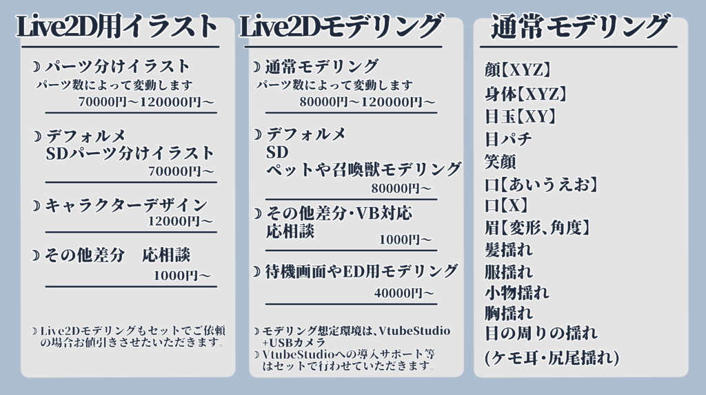 ・ご指定いただいた内容により表情差分やお値引きのサービスをご提案しております。